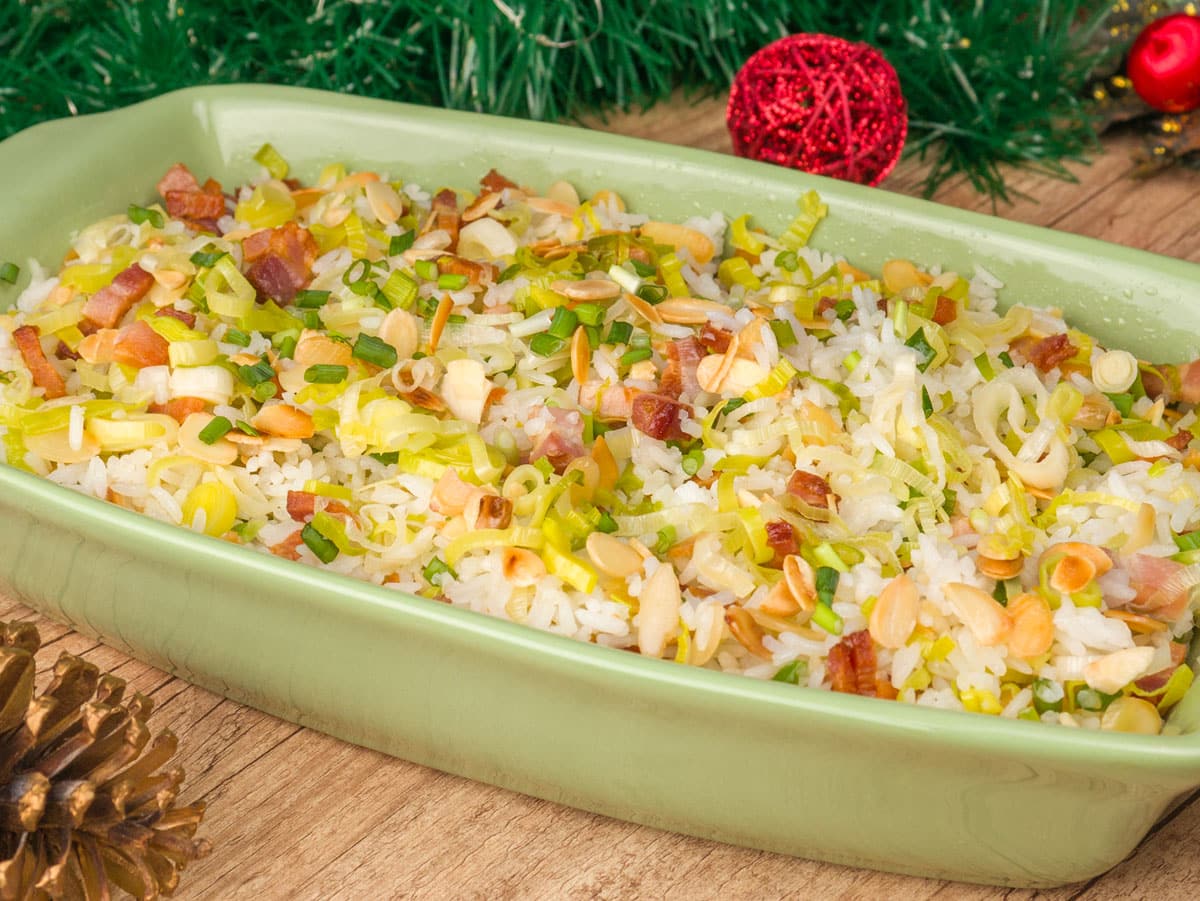 Como fazer Arroz de Natal com Bacon e Amêndoas