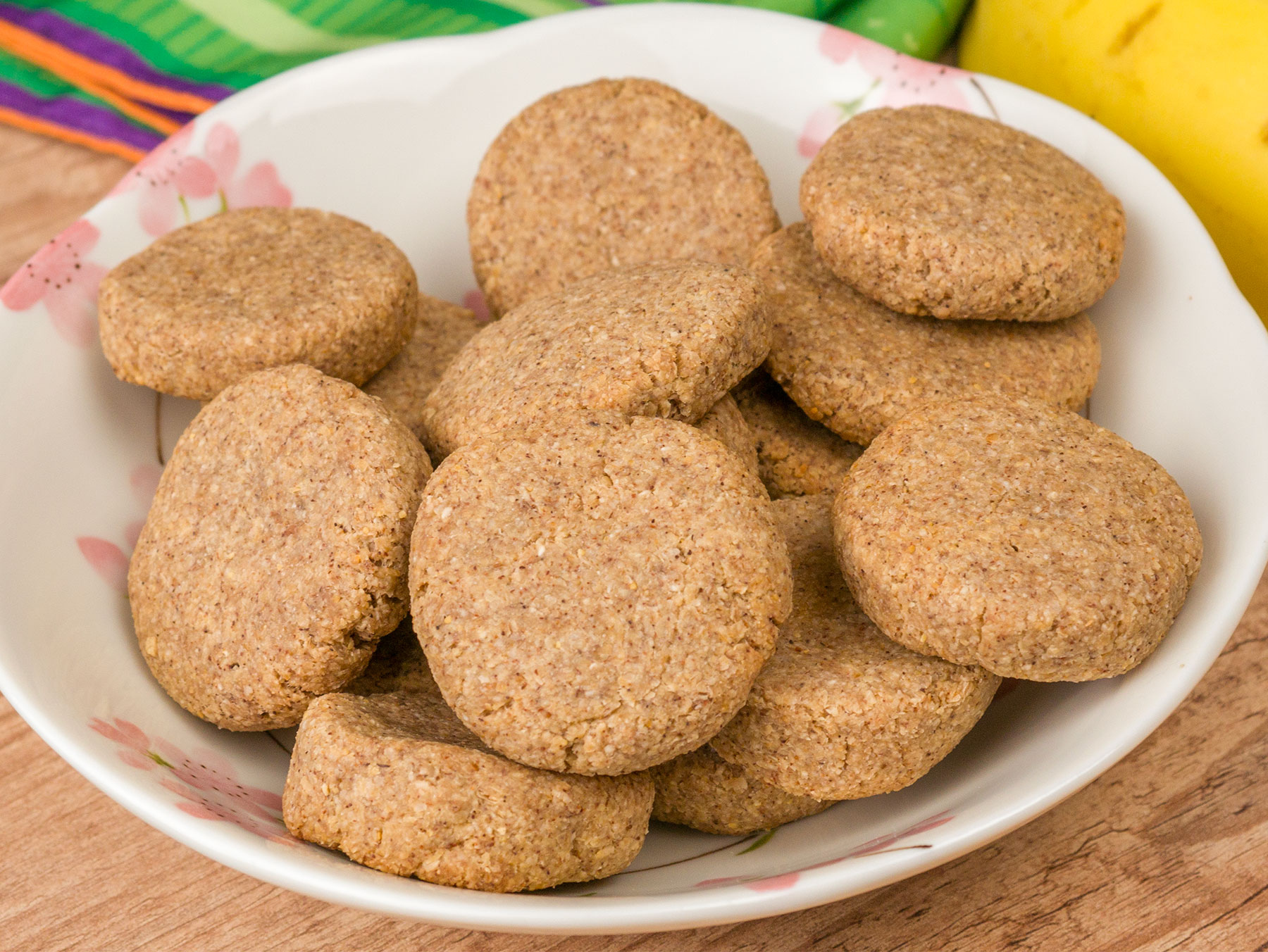 Caso esteja uma massa pegajosa junte mais um pouquinho de aveia ou até mesmo de farinha de trigo, aqui usei 1/4 de xícara, mas isso pode depender do tamanho da banana