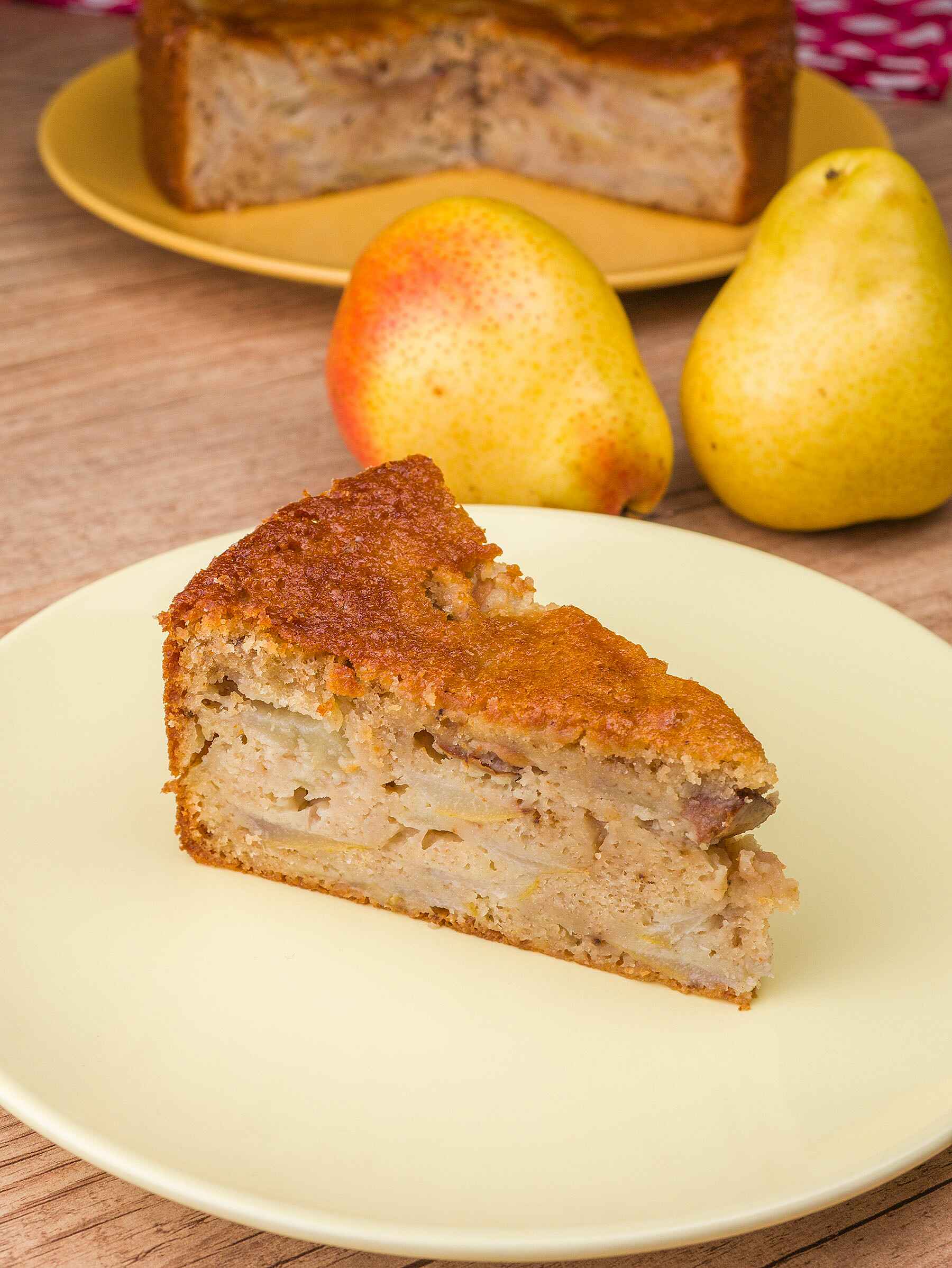 Por cima coloque o restante das peras E finalize com uma fina camada de massa, isso faz com que todo bolo fique com peras.
