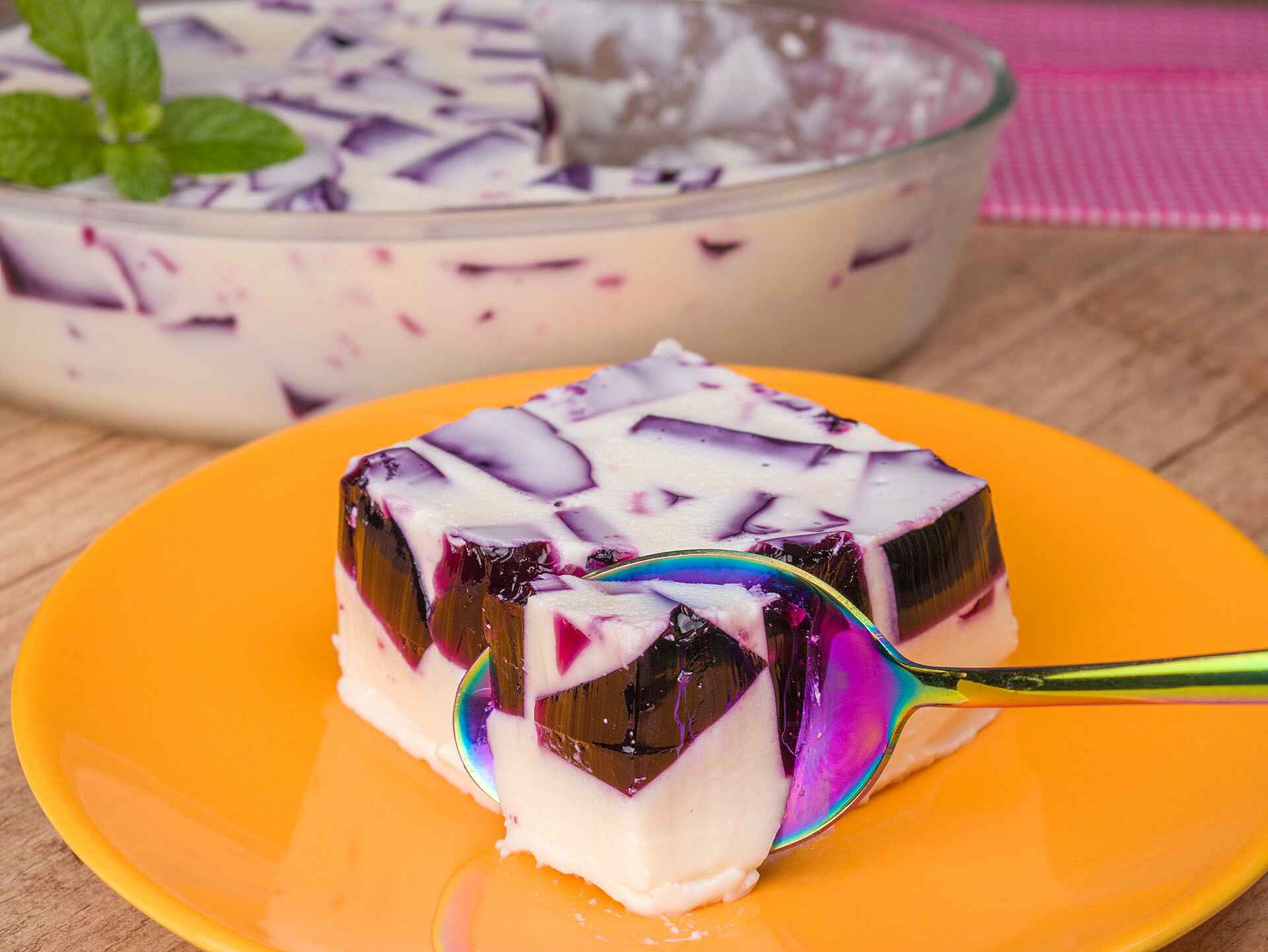 12 g de Gelatina sem sabor 75 mL de Água 390 g de Leite condensado 90 g de Leite ninho 200 g de Creme de leite 240 mL de Leite