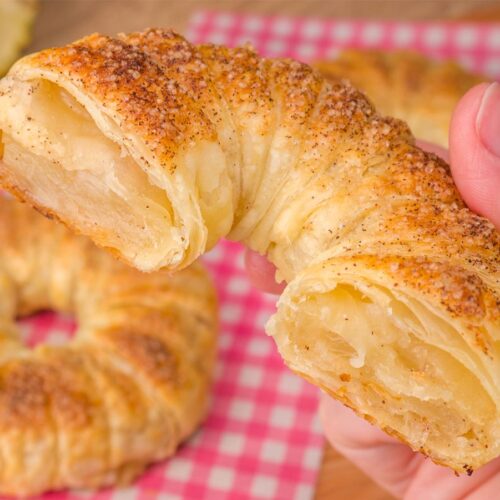 Corte a massa folhada em tiras no sentido do comprimento