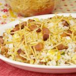 Sirva em uma travessa e cubra com o restante da batata palha