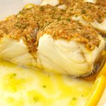 Coloque 1 colher de sopa desta mistura em cada lombo de bacalhau