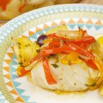 Com o bacalhau um pouco mais frio, retire a pele e espinhas e transfira para um refratário