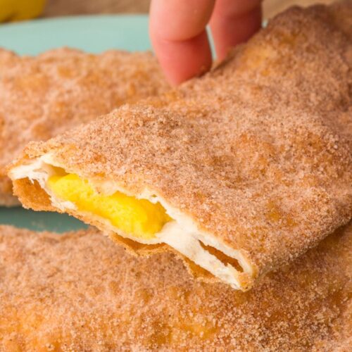 Umedeça com água as laterais da massa e dobre a massa de pastel por cima