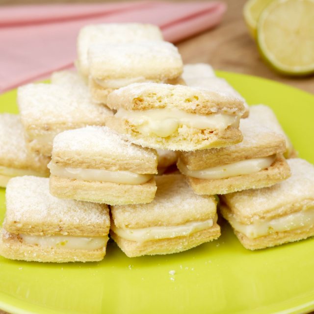 Passe o creme de limão em uma parte de um biscoito