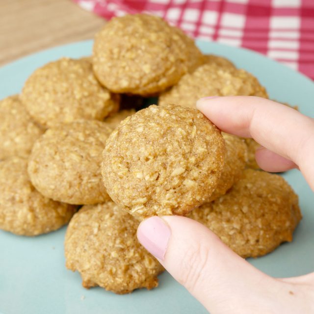 Distribua em uma assadeira untada com manteiga e polvilhada com farinha de trigo integral com espaços entre elas para que o biscoito possa esparramar e não grudar um ao outro