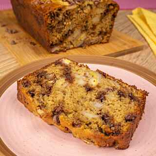 Decore com fatias de banana e o restante das gotinhas de chocolate
