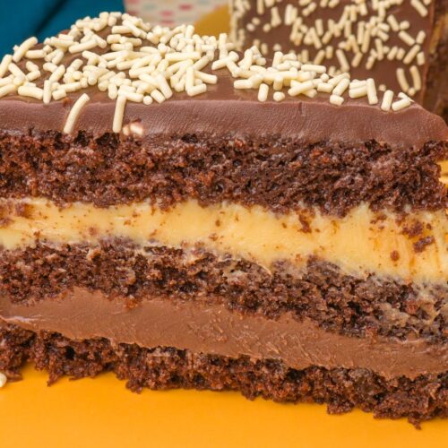 Esse bolo fiz especialmente para o aniversário do Diogo e modéstia a parte ficou absurdamente incrível, a combinação de brigadeiro com baba de moça vale muito a pena ser feita ai na sua casa. Bora aprender!