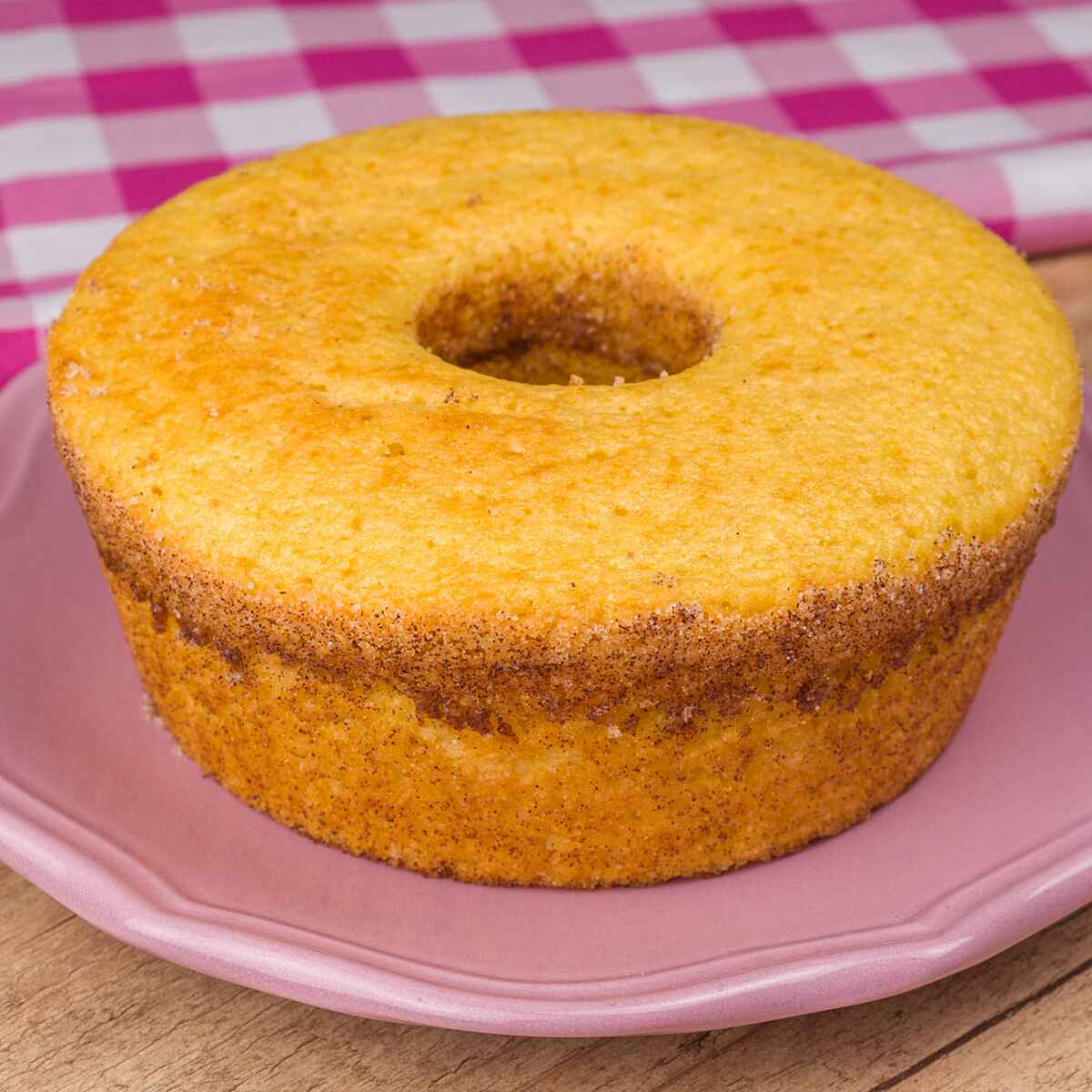 Transfira para uma forma de furo central untada com manteiga e uma mistura de açúcar e canela de 16 cm de diâmetro