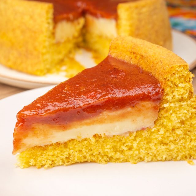 Adicione o creme de cream cheese e por cima a goiabada cremosa