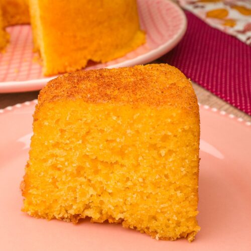 Despeje em uma forma untada e polvilhada com açúcar e canela de 20 cm de diâmetro e leve ao forno pré aquecido a 200ºC e deixe por cerca de 40 minutos ou até fazer o teste do palito e sair limpo