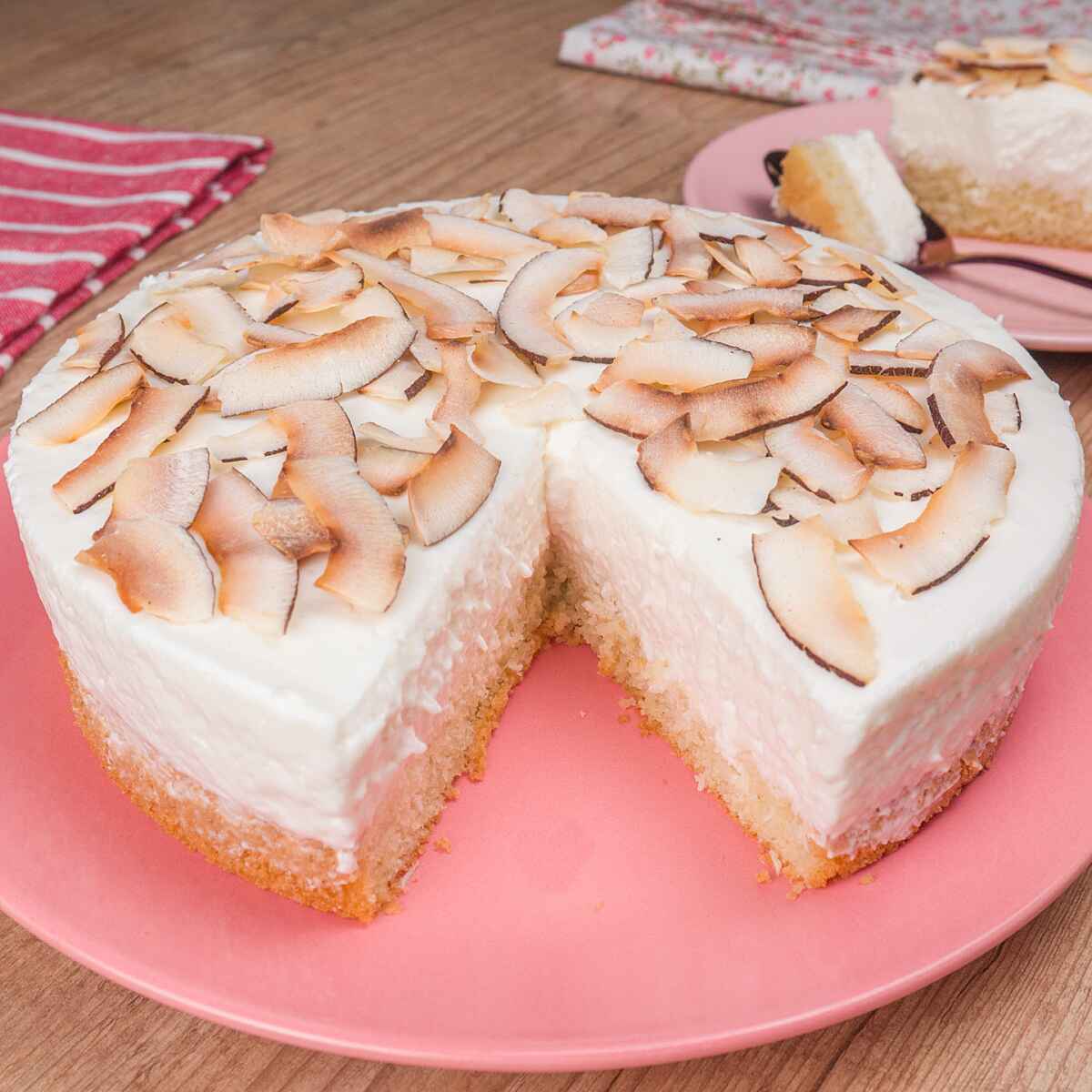 Transfira o bolo mousse para um prato e decore com os chips de coco
