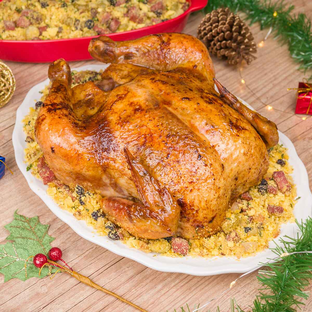 Sirva o chester acompanhado de farofa