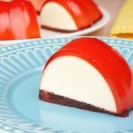 Com uma espátula de maneira bem delicada solte as laterais do creme de coco; Quando você ver que está bem solta comece a colocar devagar as gelatinas de morango já mais frias