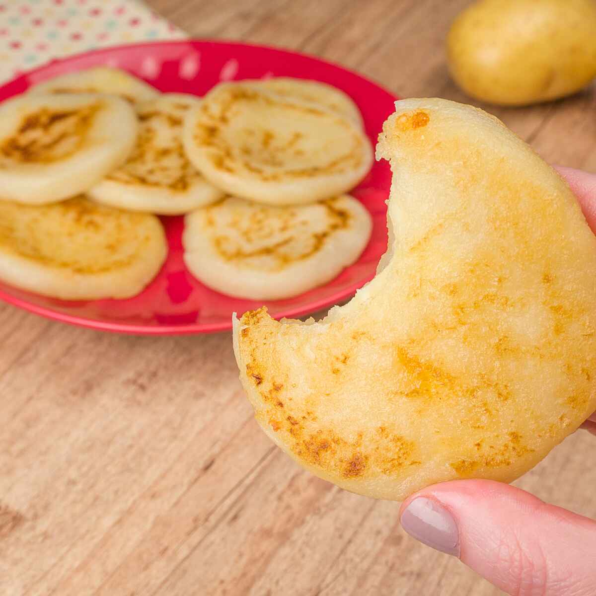 Em uma tigela misture com as mãos o polvilho doce, a batata amassada e o sal