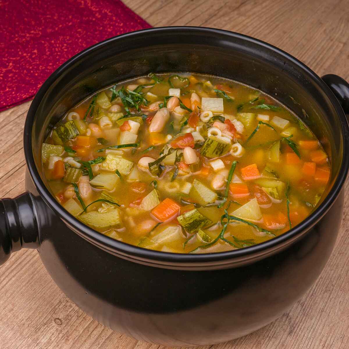 Essa sopa é de origem Italiana e consiste em uma grande variedade de legumes, feijão e arroz ou macarrão. Não existe uma receita específica para Minestrone, sendo assim você pode utilizar aqueles legumes que tem na geladeira. Bora aprender a minha versão.