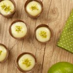 Distribua o chocolate derretido e temperado em forminhas de copinhos