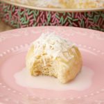Depois dos pãezinhos prontos e ainda mornos, cubra com a calda e coloque o coco seco em cima