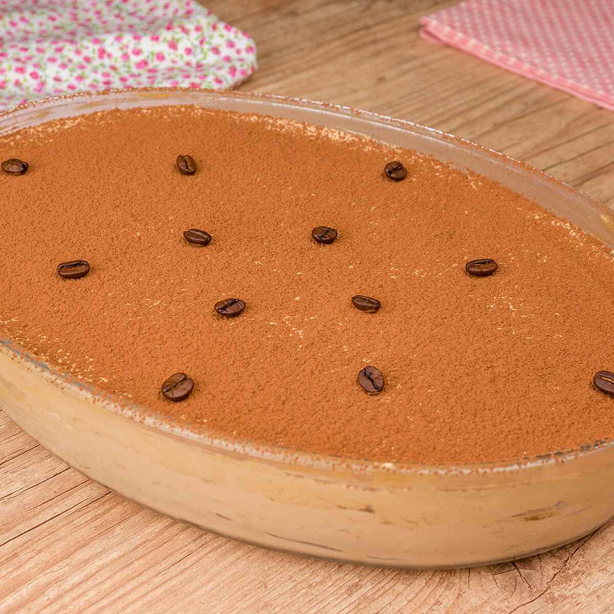 Na hora de servir polvilhe cacau e decore com grãos de café