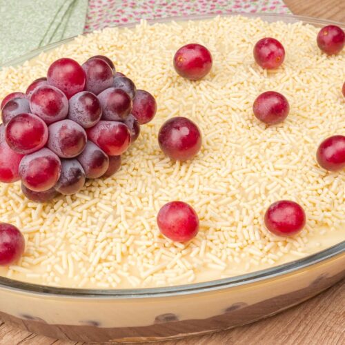 Um pavê diferente de todos os outros que você já provou, feito com camada de chocolate meio amargo e camada de chocolate branco. Bora aprender essa delícia de pavê de uva.