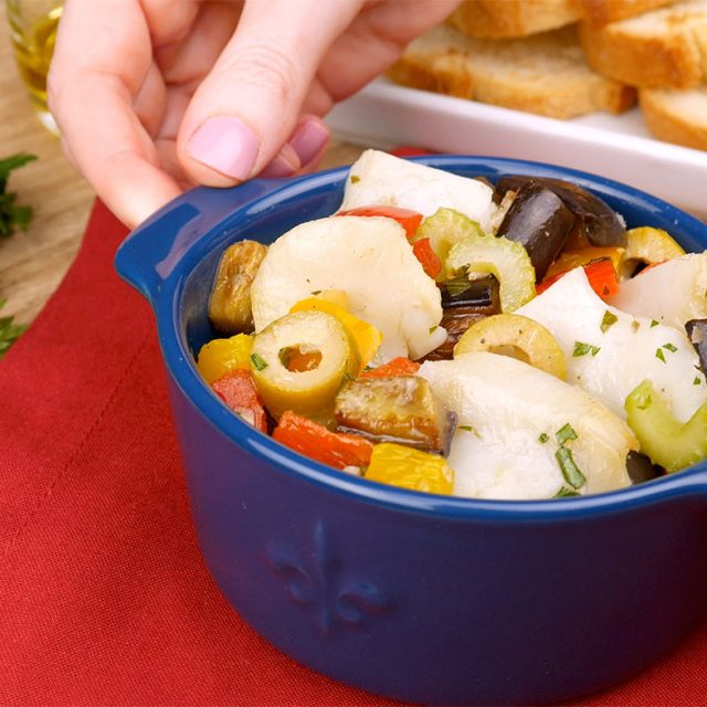 Opaa quem gosta de caponata de berinjela e de bacalhau vai pirar com esta receita aqui.Vou ensinar uma salada de bacalhau estilo caponata, que é deliciosa e pode ser consumida quente ou fria, com folhas ou até como antepasto.Então bora aprender esta receita super versátil.