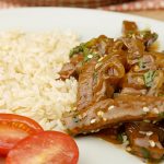 Acrescente a carne em tirinhas, o shoyu, a água com o amido de milho diluído e o açúcar mascavo