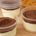 FINALIZAÇÃO: Retire os potinhos da geladeira e cubra com uma camada de cobertura