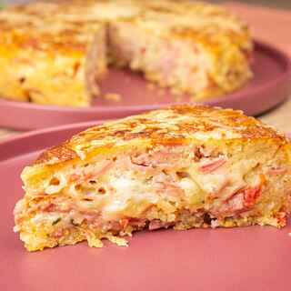 Em uma tigela grande misture os ingredientes do recheio: mortadela, queijo muçarela, a cebola, o tomate, as azeitonas e tempere com um pouco de sal, pimenta do reino e orégano
