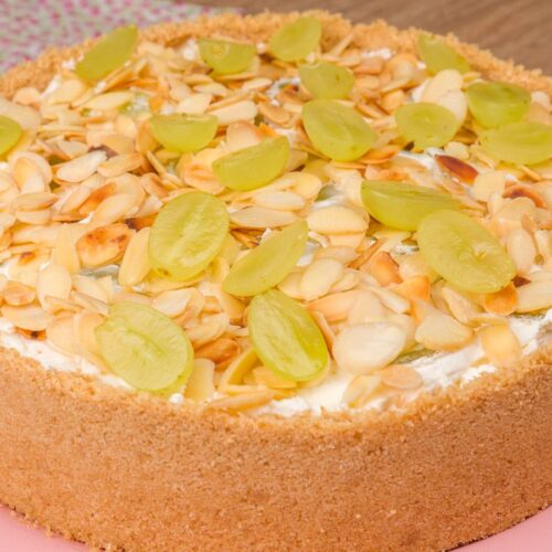 Finalize com as amêndoas laminadas e as uvas